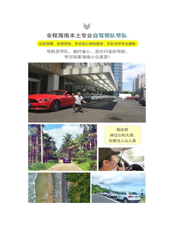 品质保障:自驾保险,全程海南本土专业自驾领队带队,安全贴心细致服务,车队对讲手台通联